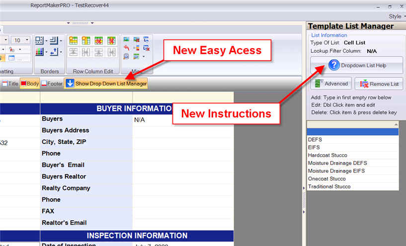 There is a new Drop Down List Manager Button (see below) that is visible when working on a flexgrid that will open up the list manager. There is also new quick help with instructions on using and working with dropdown lists (see below).